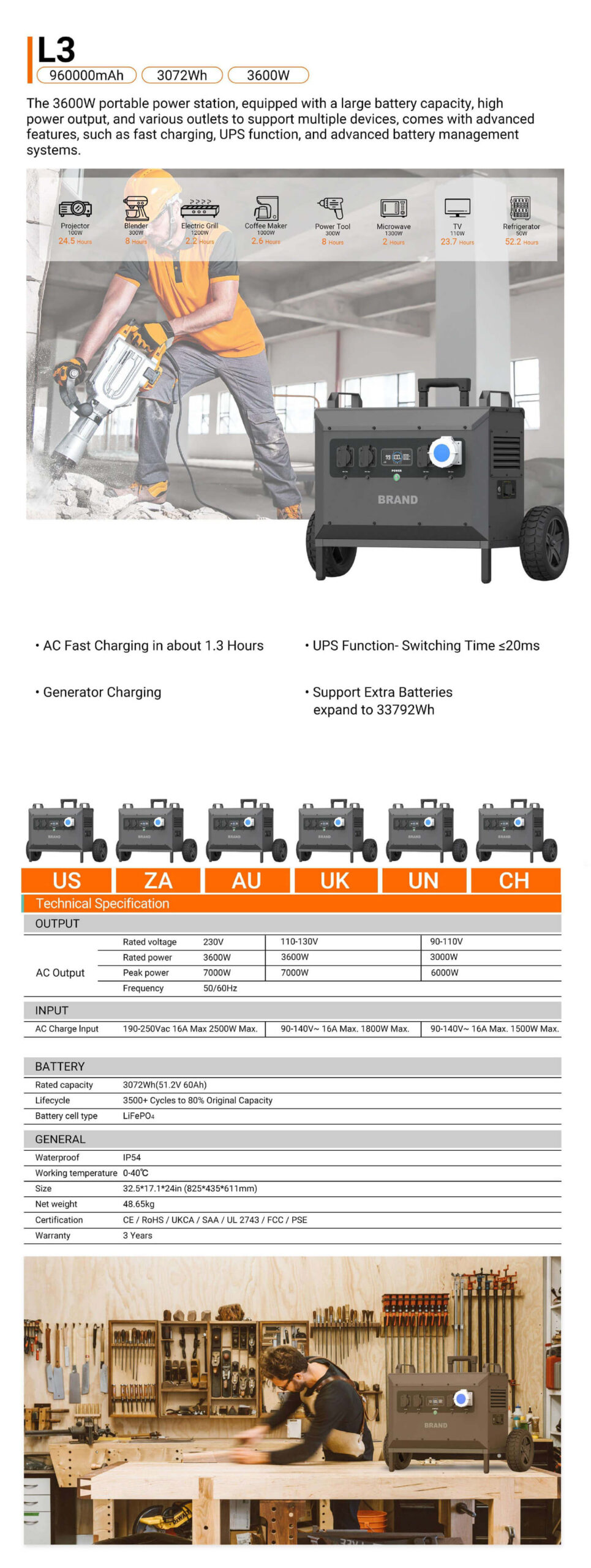 BATTERY Rated capacity 3072Wh(51.2V 60Ah) 3072Wh(51.2V 60Ah) 3072Wh(51.2V 60Ah)