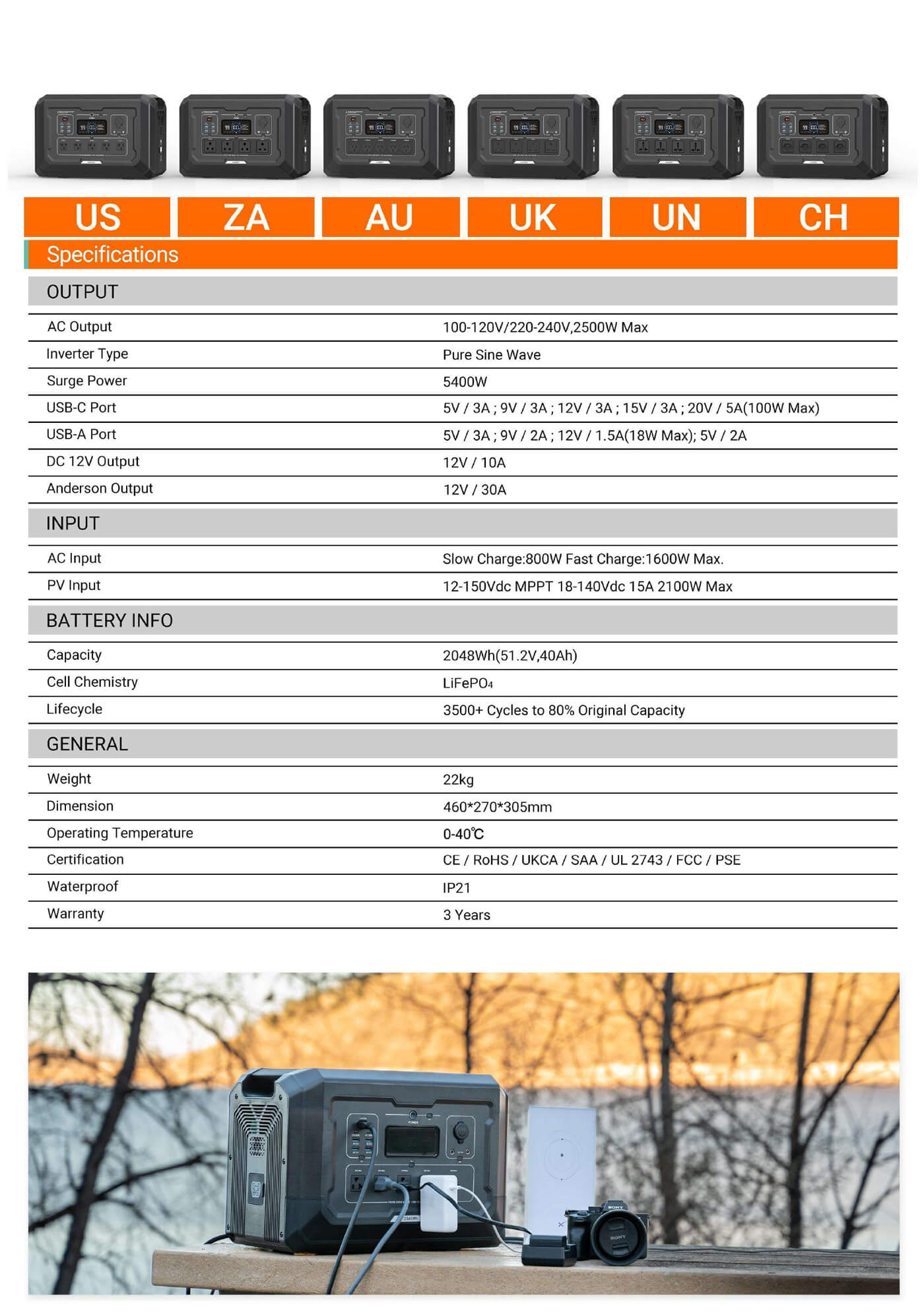 | OUTPUT | AC Output | 100-120V/220-240V,2500W Max |