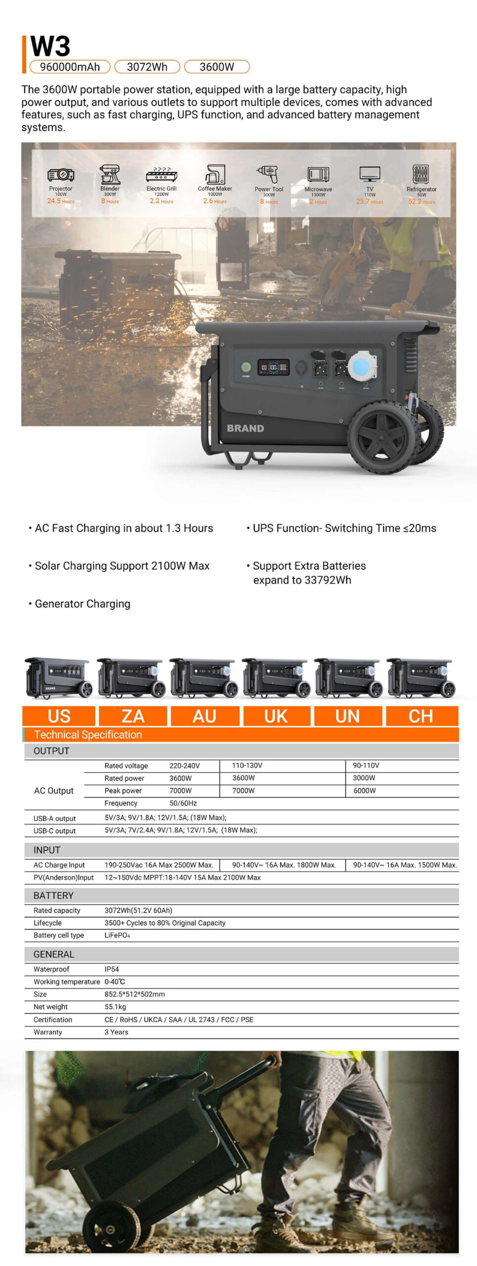 | BATTERY | Rated capacity | 3072Wh(51.2V 60Ah) | 3072Wh(51.2V 60Ah) | 3072Wh(51.2V 60Ah) |